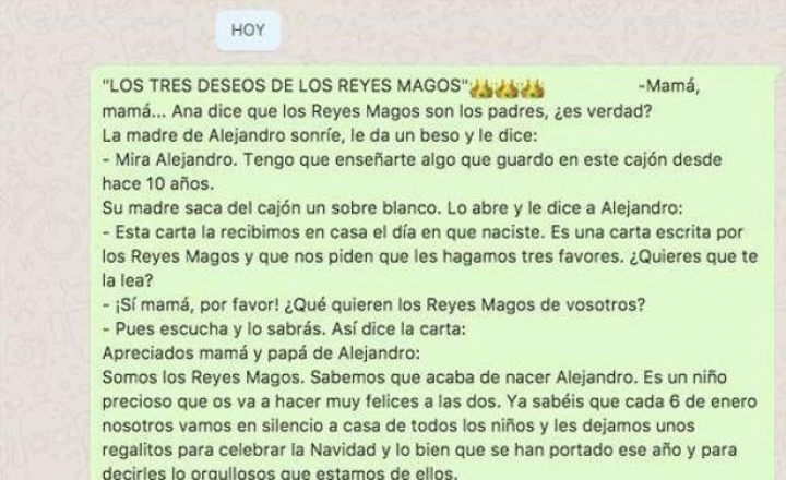 - Esta carta la recibimos en casa el día en que naciste. Es una carta escrita por los Reyes Magos y que nos piden que les hagamos tres favores. ¿Quieres que te la lea?