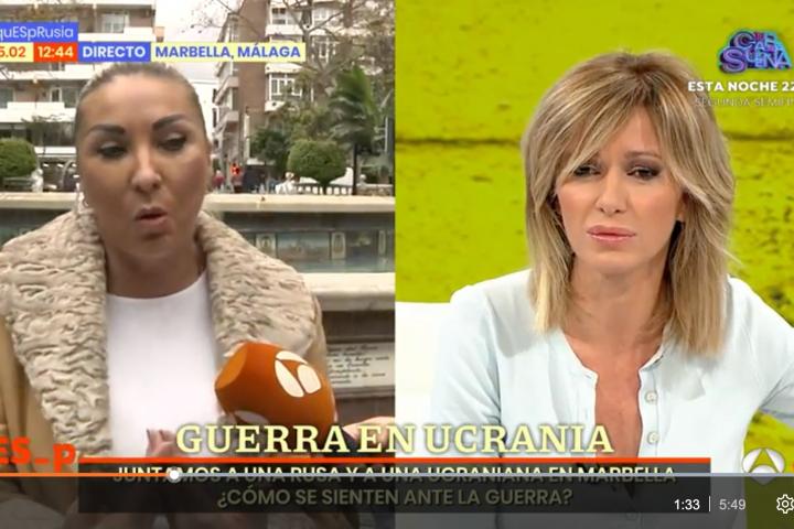 Susanna Griso se ha enfrentado dialécticamente este viernes a una ciudadana rusa en Espejo Público a cuenta de la invasión de Ucrania por parte de Rusia.