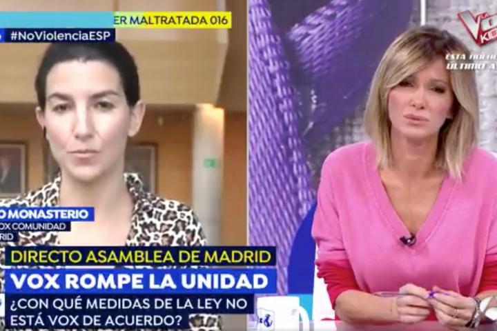 Monasterio, durante la entrevista con Susanna Griso, ha reiterado que durante todo el día vivieron “un linchamiento”. La presentadora y la política de la formación ultraderechista ha tenido un enfrentamiento a raíz de varias declaraciones de la política.