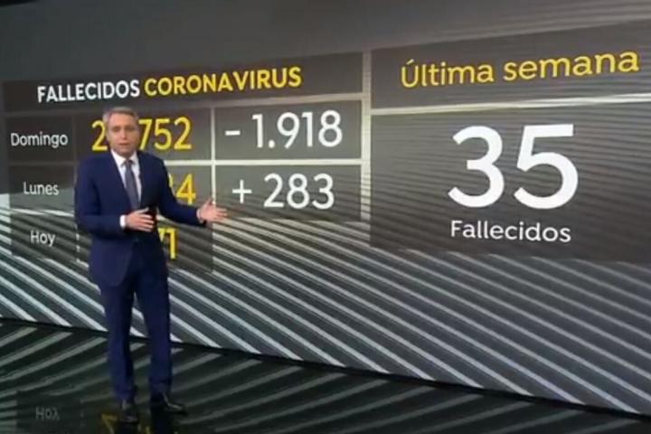 Vallés ha lamentado “lo difícil” que está resultando seguir “las cuentas” que cada día ofrece el Ministerio de Sanidad. Así, el periodista ha explicado que el domingo la cifra total de muertos era de 28.752. “Después de haber sacado de la lista unos 2.000, ayer se rebajaron hasta los 26.834 y hoy han sumado 283 fallecidos más, y la cifra que tienen en este momento es la de 27.171”, ha explicado.