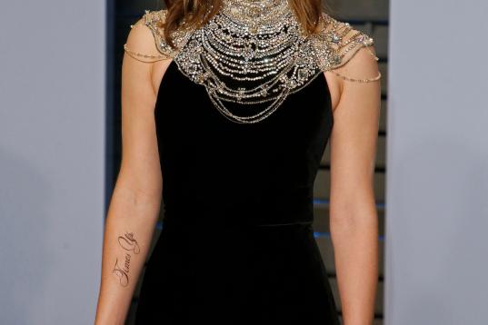 La actriz no acudió a la gala, pero sí lo hizo a la fiesta posterior organizada por Vanity Fair, y allí se pudo ver su nuevo tatuaje con la frase Time's Up o, mejor dicho, "Times Up" ya que no tiene apóstrofe.