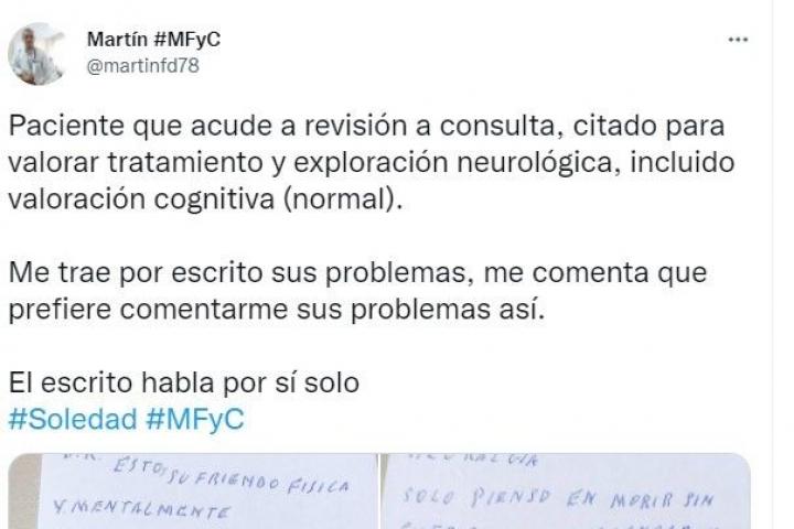 El doctor de medicina de familia Martín, conocido en Twitter como Martín#MFyC, ha abordado la problemática en la que viven muchas personas mayores y a la que no se destinan los recursos necesarios desde las instituciones.