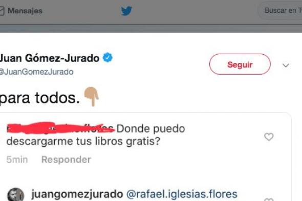 No es la primera vez que lo hace, pero esta vez la repercusión esta siendo enorme. El escritor Juan Gómez-Jurado está arrasando en Twitter con la respuesta que le dio a un lector que quería sus libros gratis.