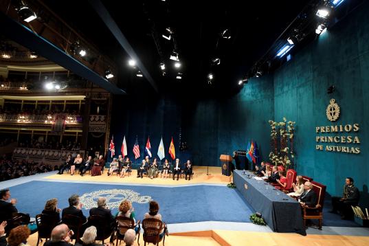 Los Reyes, Leonor y Sofía, presidiendo la mesa de los Premios.