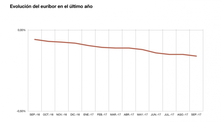 El principal índice de referencia de los préstamos hipotecarios cae hasta el -0,168 % en septiembre.