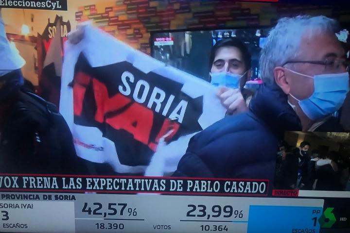 La tremenda victoria de la plataforma ha sido muy festejada en su sede, donde las cámaras de La Sexta han captado un grito que resume a la perfección lo que ha ocurrido: ”¡Cuatro amigos, cuatro matados nos los hemos cargado! ¡Toda Soria nos ha votado!”.