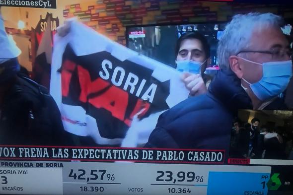 La tremenda victoria de la plataforma ha sido muy festejada en su sede, donde las cámaras de La Sexta han captado un grito que resume a la perfección lo que ha ocurrido: ”¡Cuatro amigos, cuatro matados nos los hemos cargado! ¡Toda Soria nos ha votado!”.