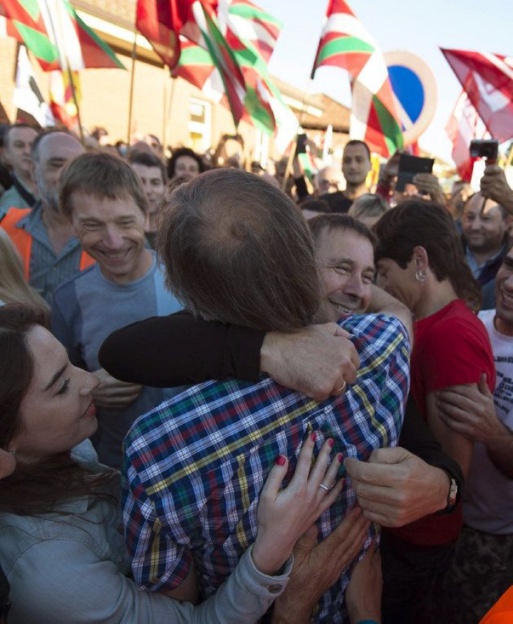 Díez Usabiaga ha sido recibido por más de un centenar de familiares y amigos, entre ellos el coordinador general de EH Bildu, Arnaldo Otegi, que cumplió pena por el mismo caso. Los concentrados han llegado en autobuses desde el País Vasco y han gritado consignas a favor de la salida de los presos de ETA.
