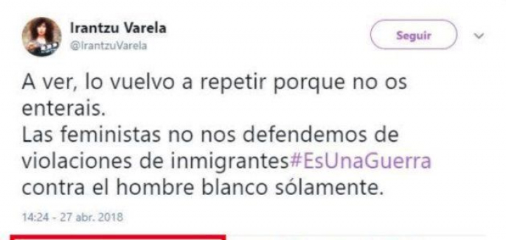 La indignación por la polémica sentencia de 'La Manada' por la que 5 hombres han sido condenados sólo a 9 años de cárcel cada uno por abusar sexualmente a una chica de 18 años el 7 junio de 2016 en Pamplona no para de crecer. Miles de mujeres se han echado a la calle para criticar lo barato que sale violar a una mujer en España. Una de esas mujeres ha sido la periodista y feminista Irantzu Varela.