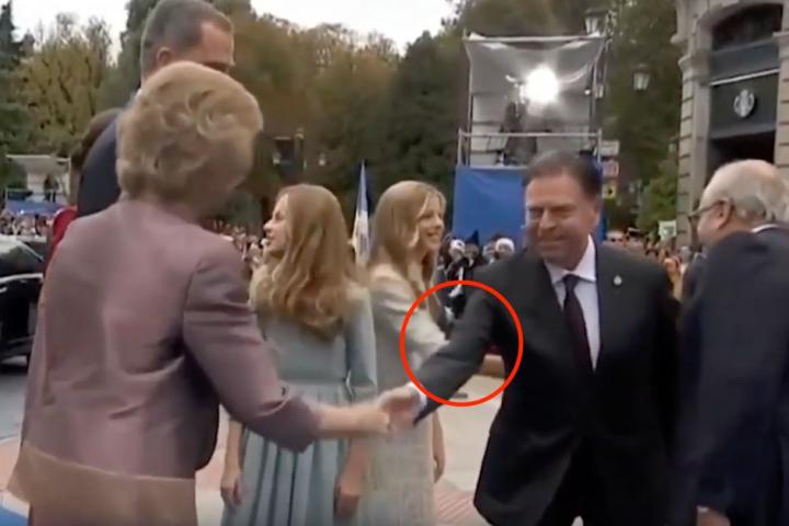 En ese instante ha habido una pequeña confusión a la hora de los saludos. La infanta Sofía ha dado la mano dos veces al presidente de la Fundación Princesa de Asturias tras un pequeño baile de posiciones. Dejando uno de esos momentos de tierra trágame que ha quedado en una divertida anécdota.