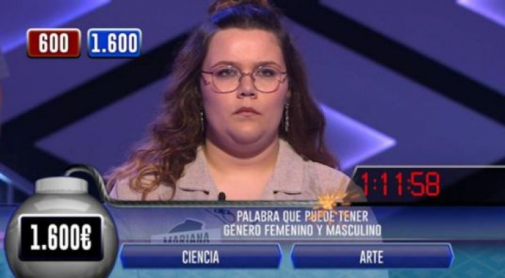 “Palabra que puede tener género femenino y masculino”, preguntaban desde el programa. “Ciencia” y “arte” eran las dos opciones. Mariana respondió que “ciencia”, la opción incorrecta.
