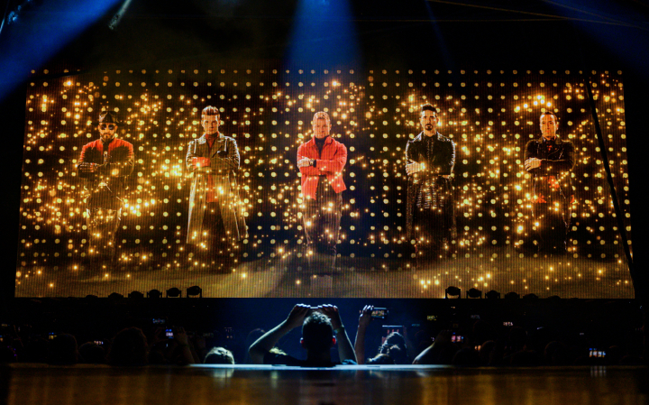 Todo quedó eclipsado por lo que venía después. Puntuales, a las 21:02, el brillo de las pantallas con destellos dorados y el nombre de la gira, el DNA tour iniciaba la que para muchos de los asistentes fue una regresión al pasado, aunque esta vez no era Doc quien ponía el Delorean de Regreso al futuro, lo hacían Backstreet Boys a base de himnos generacionales.