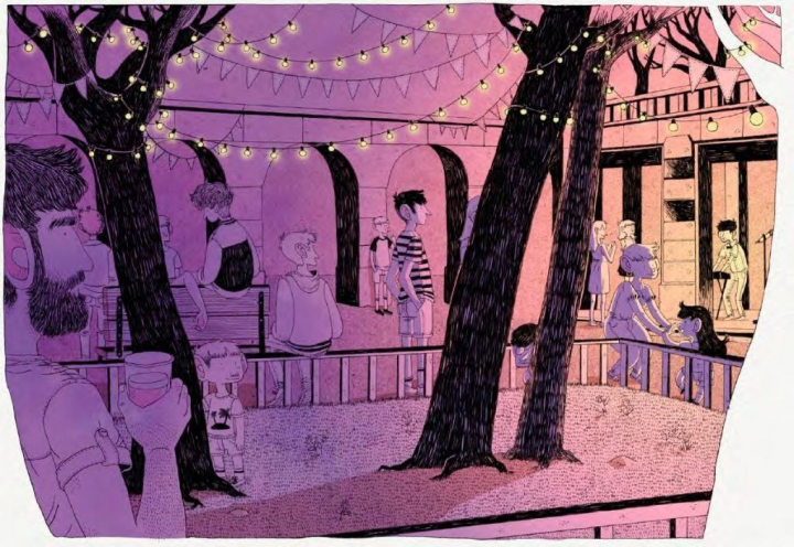 Paso las páginas al son de mi corazón descarrilando entre las viñetas. Cuando el protagonista termina su periplo en la calle Verdi apenas puedo contener ya las lágrimas. ¡Qué joya!, pienso. A esas alturas todavía me queda por descubrir el sutil encadenado final de ilustraciones y su formidable manejo de la elipsis narrativa.