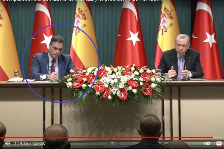 El presidente del Gobierno, Pedro Sánchez, ha comparecido este miércoles ante los medios de comunicación junto al presidente de Turquía, Recep Tayyip Erdogan, y ha dejado una imagen que está dando juego pero de la que sólo se han dado cuenta los más observadores.