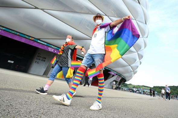 La primera señal clara se vio desde las horas de la mañana con banderas arcoíris que adornaban el ayuntamiento en la Marienplatz de la capital bávara. Paralelamente varias ONGs han repartido pequeños banderines con los colores del arcoíris, algunos de los cuales se han visto en las tribunas.