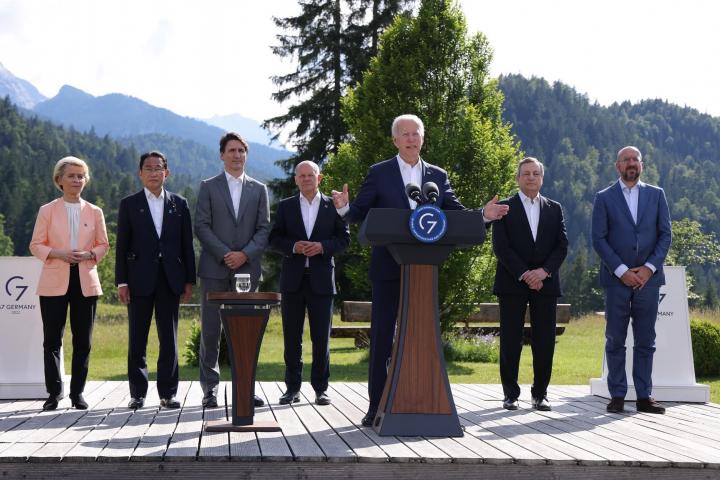 Biden anuncia que el G-7 prohibirá la importación de oro de Rusia y que lanzará un plan de infraestructuras dotado con más de 600.000 millones de dólares para contrarrestar el avance de China.