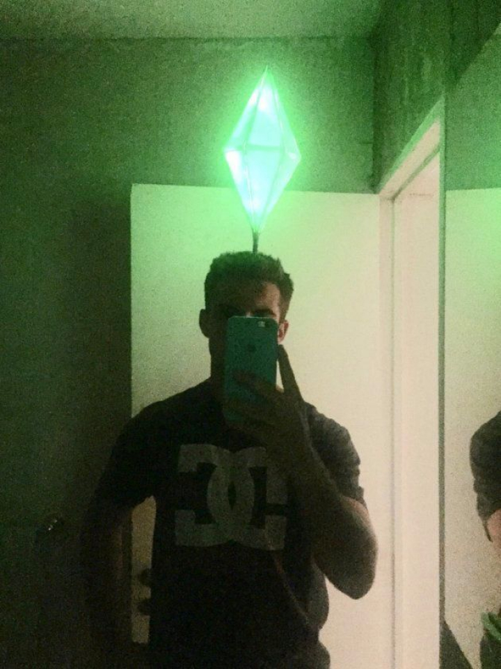 Un joven argentino ha arrasado este fin de semana en Twitter con el disfraz de Los Sims que se hizo para una fiesta. Con apenas unas varillas de madera, luces led, cartulinas y un poco de paciencia creó el diamante luminoso que en el juego señala al jugador que se está controlando.