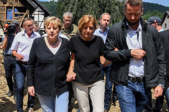 Merkel, que prometió ayudas para todos los damnificados, cogió de la mano a Dreyer, un gesto que ha dado la vuelta al mundo. Este gesto de unidad ante una desgracia cobra todavía más fuerza cuando Merkel y Dreyer pertenecen a los dos grandes partidos políticos: la Unión Demócrata Cristiana de Merkel y el Partido Socialdemócrata de Alemania de Dreyer.