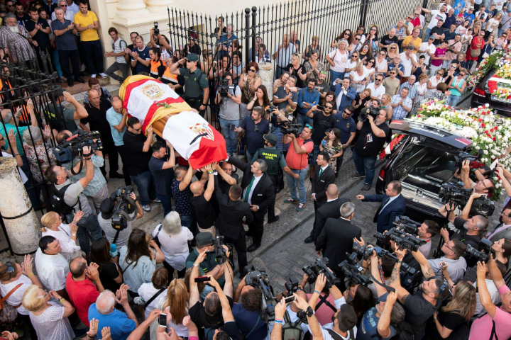 Decenas de personas quisieron darle el último adiós a la salida de la iglesia de Santa María de la Mesa de Utrera (Sevilla), su localidad natal, al término de la misa de córpore insepulto en un funeral multitudinario.