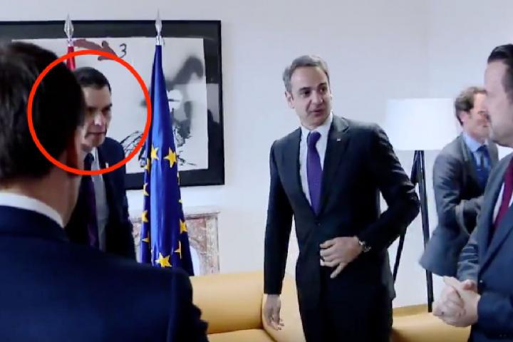 El propio Sánchez ha colgado el vídeo en su perfil de Twitter en el que se ve cómo saluda a todos los líderes menos a Bettel, que se queda sin saber qué hacer: