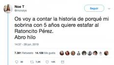 El gesto de un niño confinado con el Ratoncito Pérez emociona a miles de personas en Twitter