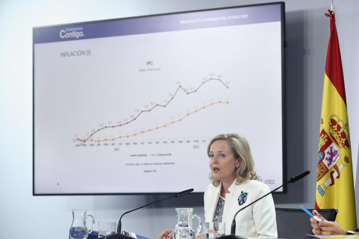 Según el cuadro macroeconómico presentado por Calviño al Consejo, el deflactor del consumo privado, un indicador similar al IPC, se ha revisado al alza, del 2,9 % al 4,1%.