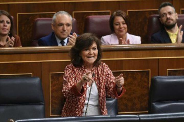 En ausencia del presidente del Gobierno, Pedro Sánchez, en Nueva York para asistir a la Asamblea General de la ONU, la vicepresidenta del Ejecutivo, Carmen Calvo, ha sido la encargada de afrontar la sesión de control de este miércoles en el Congreso. Y lo ha hecho frente a un PP y un Ciudadanos que reclaman un adelanto electoral, que censuran al gabinete por ser un "fraude" y por "mentir" y que han usado a la ministra de Justicia, Dolores Delgado, como diana de sus críticas.