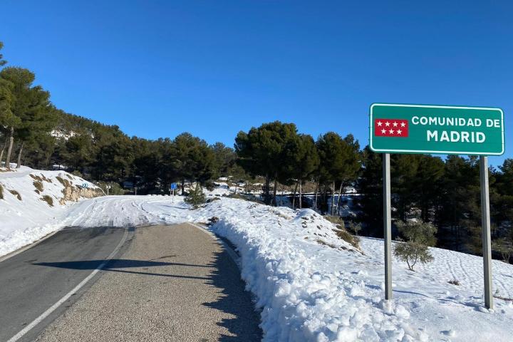 En las imágenes se veía la carretera M-322, justo en la frontera entre Madrid y Castilla-La Mancha. Así se podía ver cómo las máquinas quitanieves habían despejado la vía en la parte de Toledo, justo hasta el cartel de la frontera. En la parte de Madrid, la carretera seguía intransitable.