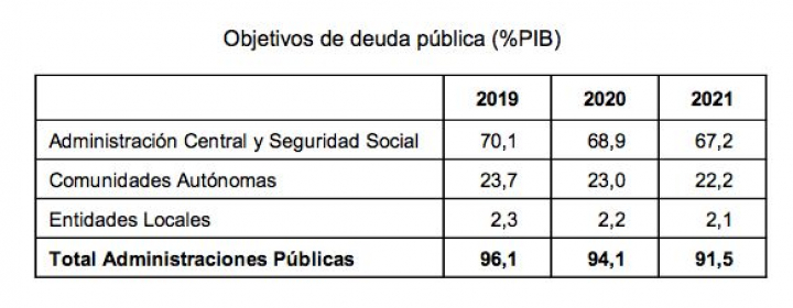 El Gobierno también ha flexibilizado los objetivos de deuda pública, que deberá reducirse hasta el 96,1% del producto interior bruto en 2019.