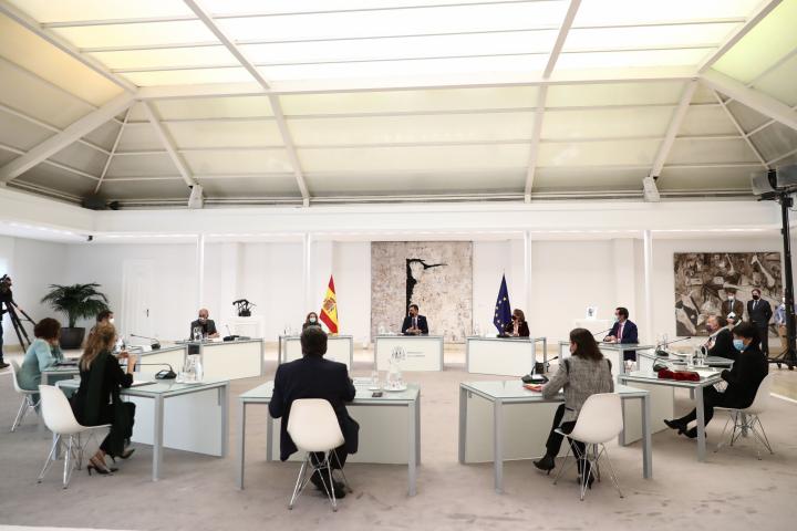 El Gobierno señala que esta mesa de diálogo servirá de cauce regular sobre las negociaciones con la Unión Europea en relación con el fondo de recuperación Next Generation EU de 750.000 millones para afrontar la crisis económica provocada por la pandemia del coronavirus.