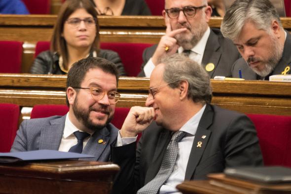 El vicepresidente y conseller de Economía, Pere Aragonès, y el conseller de Trabajo y Asuntos Sociales, Chakir el Homrani, han presentado este jueves un estudio que cuantifica la cifra del salario mínimo que creen debería tener Cataluña y que se ha puesto a disposición del Consejo de Relaciones Laborales.