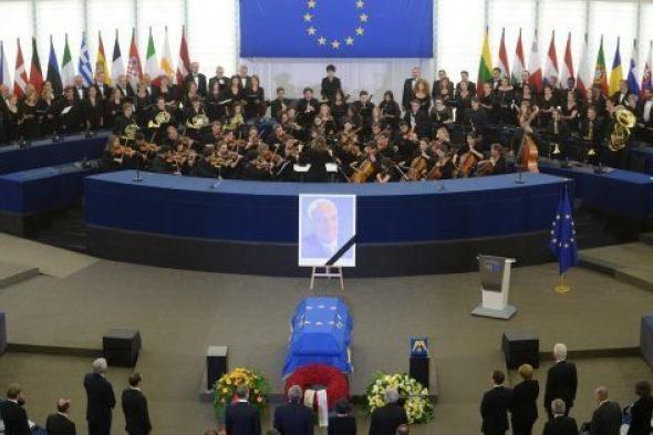 Con líderes mundiales sentados en los escaños que normalmente ocupan los eurodiputados en la sede de la Eurocámara, y con el féretro de Kohl cubierto por una bandera europea y el colofón final del himno de la Alegría, el artífice de la integración europea tuvo su final deseado en la Alsacia, la región fronteriza entre Francia y Alemania que simboliza la reconciliación y el sueño continental.