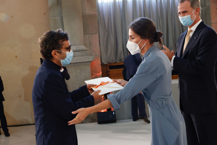 Es lo que ha sucedido este martes, en la entrega de los Premios Nacionales de Cultura 2018 y 2019. Para la ocasión, la reina ha estrenado un vestido azul de escote cruzado de Adolfo Domínguez. Precisamente el diseñador gallego era uno de los galardonados de la noche y recibió de mano de los reyes el Premio Nacional de Moda 2019.