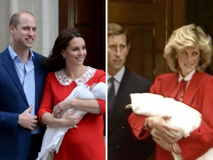 Catalina de Cambridge ya había elegido a esta modista para las dos anteriores ocasiones en las que había presentado a sus hijos. El vestido rojo se ha interpretado como un guiño a su suegra fallecida, Diana de Gales: por el color, el vestido recordaba al que Lady Di se puso cuando salió del hospital con su segundo hijo, Enrique, en brazos en 1984.
