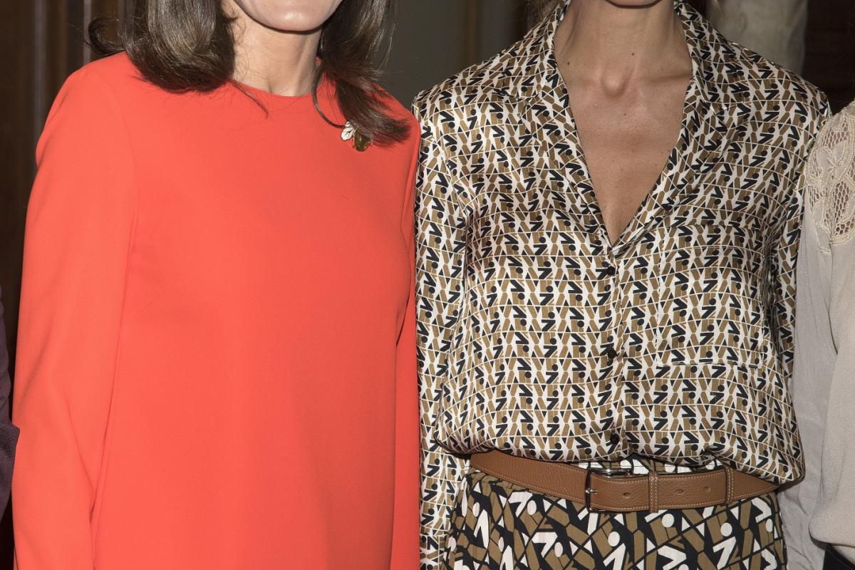 La reina completó su outfit con unos salones negros y una cartera de Nina Ricci. Awada lo hizo con unos zapatos de ante camel y un cinturón del mismo color.