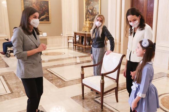 La chaqueta supone el segundo estreno del año de la monarca en 2021, después de la blusa que lució en la Pascua Militar y con la que rompió el periodo de reciclaje y austeridad de 2020. Letizia ha completado su look con unos pantalones negros básicos de Hugo Boss, un jersey de punto del mismo color y su inseparable anillo de Karen Hallam.