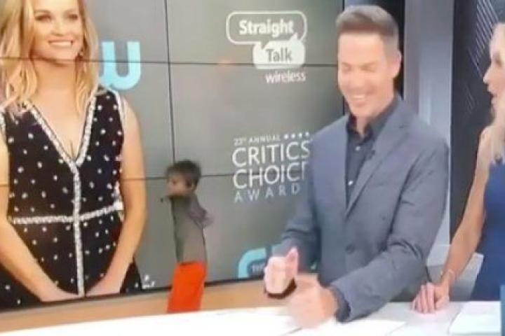 Es el otro presentador quien se percata primero y se echa reír, mientras Rancic pone cara de susto e intenta detener al pequeño, que se pone a bailar desaforadamente. "¡Cielo, mamá está trabajando!", exclama mientras lo persigue sin éxito por el plató.