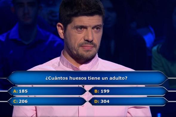 En otra pregunta en la que se le cuestionaba por la cantidad de huesos que hay en un adulto, el navarro reveló que en una conversación con Valentín le dijo que serían 206. Manu marcó esa opción y de nuevo lo acertó.
