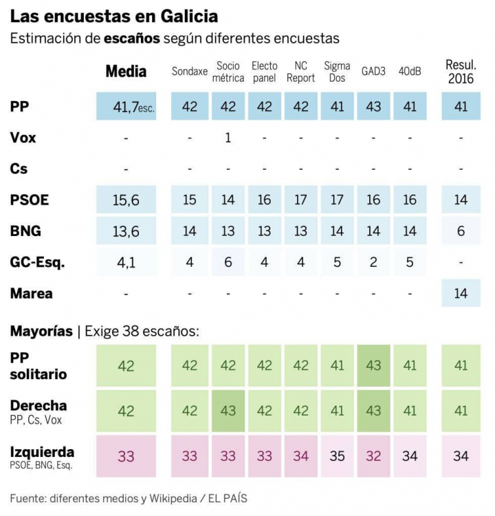El Centro de Investigaciones Sociológicas (CIS) publicó su vaticinio el 24 de junio. Acertó en la horquilla de entre 40 y 42 diputados que le dio al PP en Galicia —se hizo con 41—, pero erró con los socialistas. El instituto sociológico estatal les situó como segunda fuerza con entre 16 y 18 escaños, pero se quedaron con 15 y con el BNG por delante.