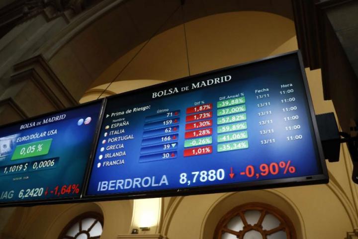 La prima de riesgo española ha repuntado hasta los 75 puntos básicos, con el interés exigido al bono a diez años en el 0,451%, y la cotización del euro frente al dólar se mantenía en 1,1003 ‘billetes verdes’.