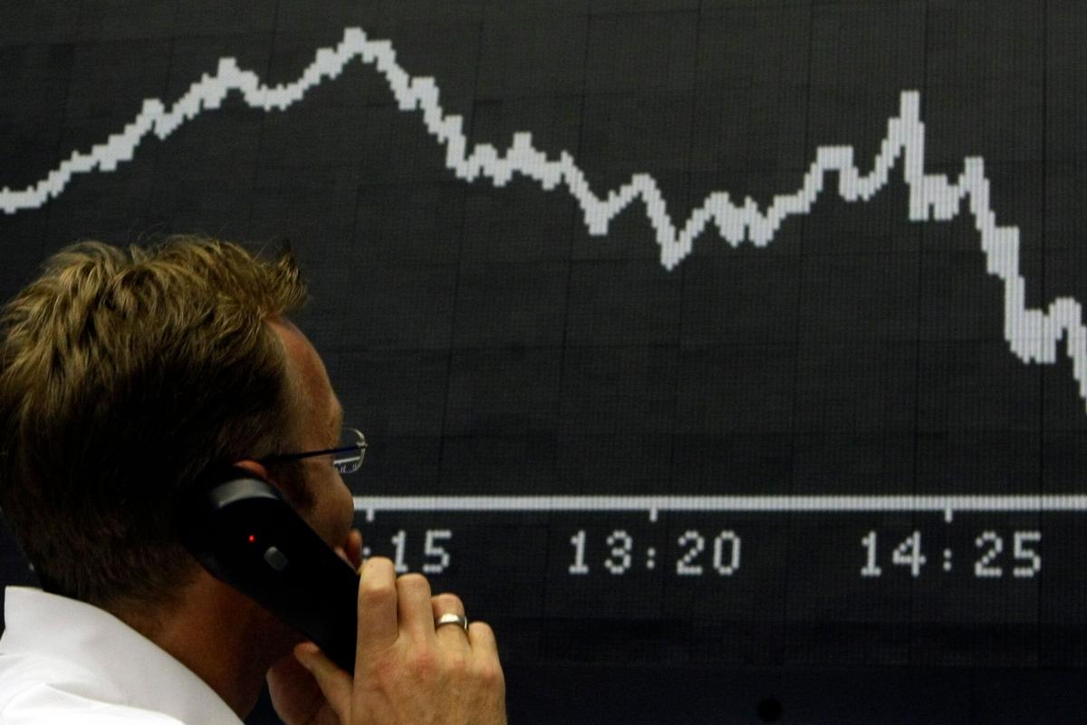A trader talks on the phone as he stands in front of the DAX board at the Frankfurt stock exchange September 16, 2008. REUTERS/Alex Grimm (GERMANY)Alex Grimm / Reuters