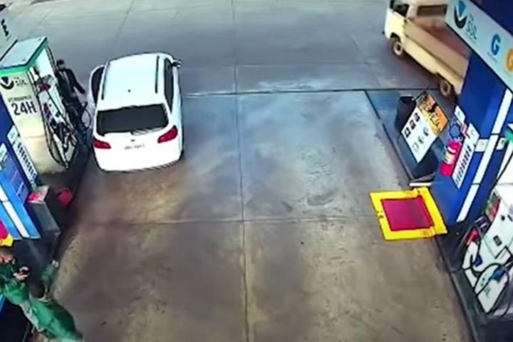 El impactante vídeo del descuido de un conductor en una gasolinera