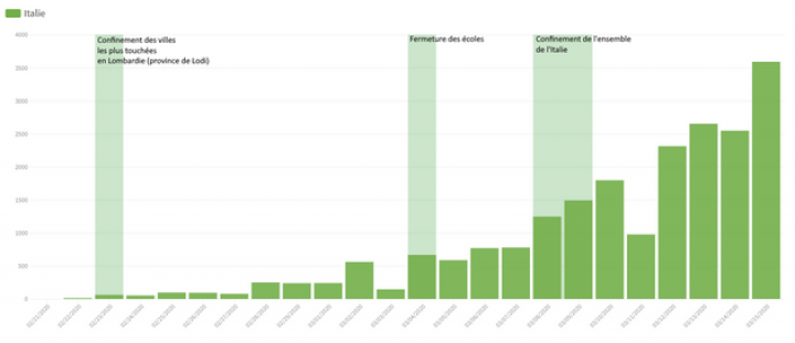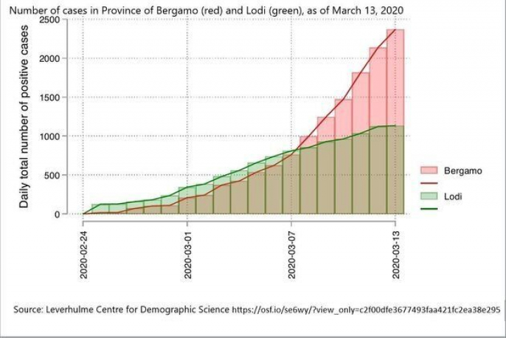 “El 13 de marzo, la provincia de Bérgamo, la más afectada (con 2368 casos), había superado ampliamente a la de Lodi (1133 casos), donde comenzó el foco, y donde las medidas de confinamiento se introdujeron antes”, explican los autores.
