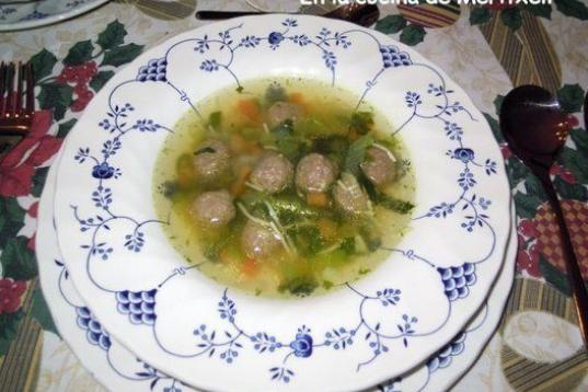 Se sirve con albóndigas. Puedes ver la receta completa en Cookpad.