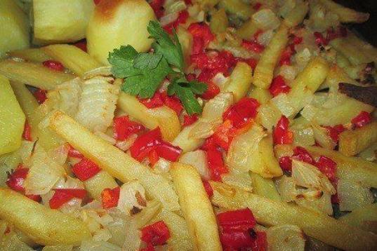 Patatas grandes, patatas pequeñas, cebollas y pimientos morrones son los ingredientes para preparar en la receta. Los pasos a seguir están en Cookpad.