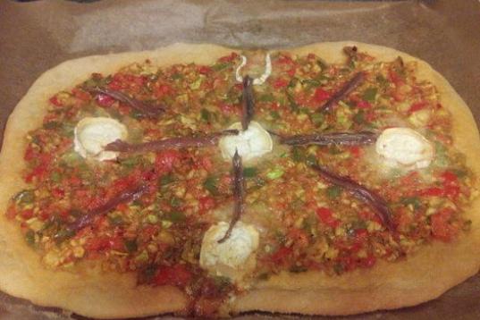 Las verduras son pimiento rojo, pimiento verde y calabacín. Encuentra la receta en Cookpad.