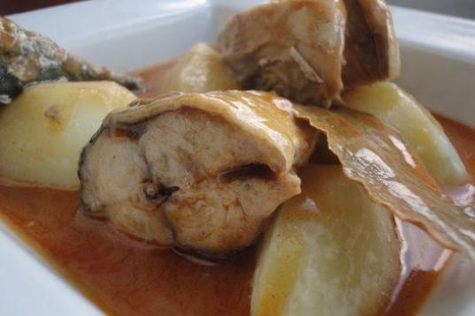 La salsa está hecha con vino blanco, agua, pimentón, harina, cayena y laurel. Mira aquí la receta.