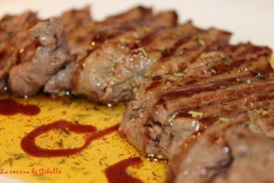 El entrecot de ternera se adereza con tomillo, romero, pimentón dulce, pimienta negra, sal gruesa, vinagre de frambuesa y aceite de oliva. Ésta es la receta.