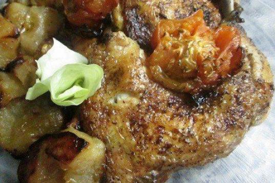 La receta se hace con manzanas verdes, tomates medianos, traseros de pollo, orégano, pimienta negra y limón. Mira la receta completa en Cookpad.