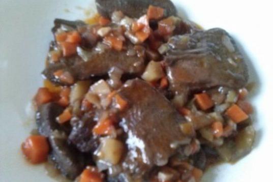 Con patatas, ajo, zanahoria, cecina, caldo de pollo, aceite y sal. Mira la receta completa en Cookpad.